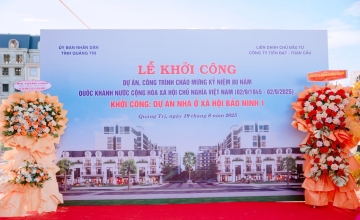Sáng 19/8, tại Khu đô thị Bảo Ninh 1, phường Đồng Hới, UBND tỉnh Quảng Trị, Liên danh Công ty TNHH Xây dựng Tiến Đạt và Công ty CP Đầu tư Xây lắp Toàn Cầu tổ chức lễ khởi công xây dựng Khu nhà ở xã hội Bảo Ninh 1. Đây là công trình nằm trong danh sách 250 dự án khởi công, khánh thành chào mừng kỷ niệm 80 năm Cách mạng Tháng Tám và Quốc khánh 2/9. Dự lễ có Ủy viên Ban Thường vụ Tỉnh ủy, Bí thư Đảng ủy phường Đồng Hới Phạm Thị Hân; Phó Chủ tịch UBND tỉnh Phan Phong Phú cùng đại diện lãnh đạo các ban, ngành, địa phương.