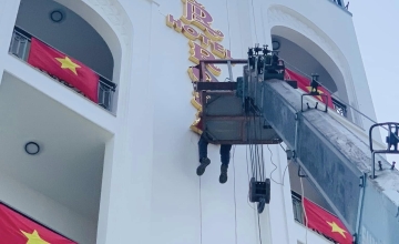 Thi công quảng cáo và trang trí hệ thống hiệu ứng ánh sáng tòa nhà khách sạn Rosa Lie. Địa chỉ: 29 Phạm Văn Đồng, TP Đồng Hới, tỉnh Quảng Bình.